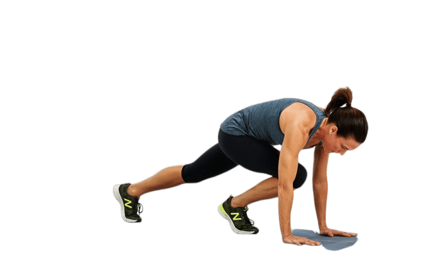 Run the knees in and out from a push-up position. Mountain climbers raise the heart rate while building strength and endurance in the core. No special skills are needed.This exercise can tax the wrists, arms, and shoulders, as well as the core.